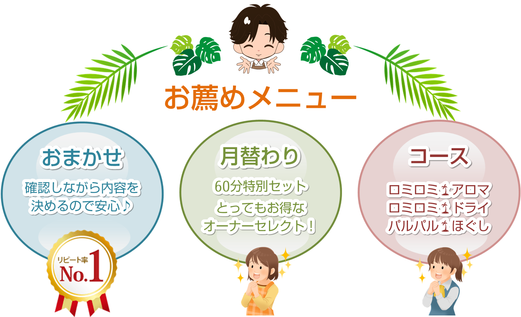 🌴 お薦めメニュー(色々な癒しが楽しめる)