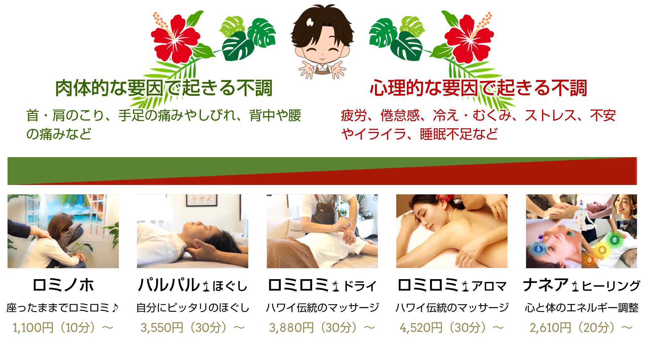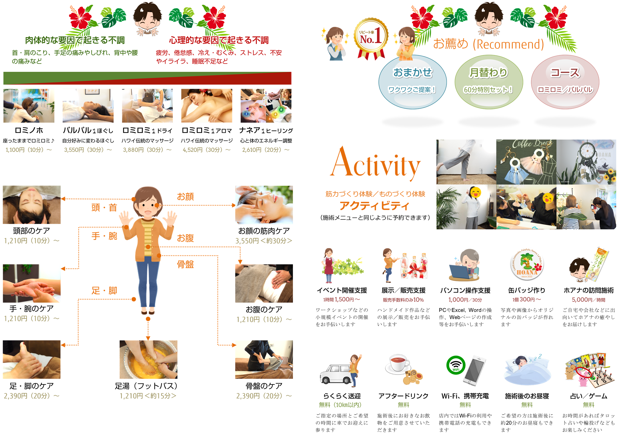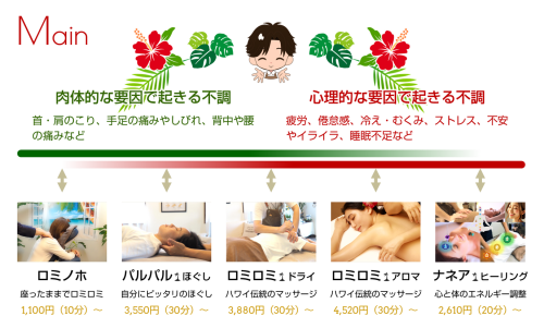 ホアナの癒しを色々と楽しみたい方や初めての方には『おまかせ|月替わり|コース』がお薦めです!