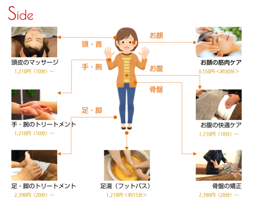 ※利用したいメニューが決まらない場合は「おまかせ」でご予約ください。当日、お話を伺いながらご提案させて頂きます♪