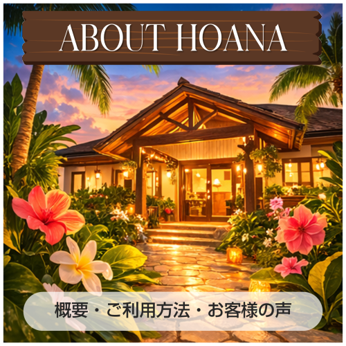 HOANA(ホアナ)は『富士市で1日癒されて楽しめる』をテーマにした癒しのサービスを提供するハワイアンスタイルのリラクゼーションサロンです。