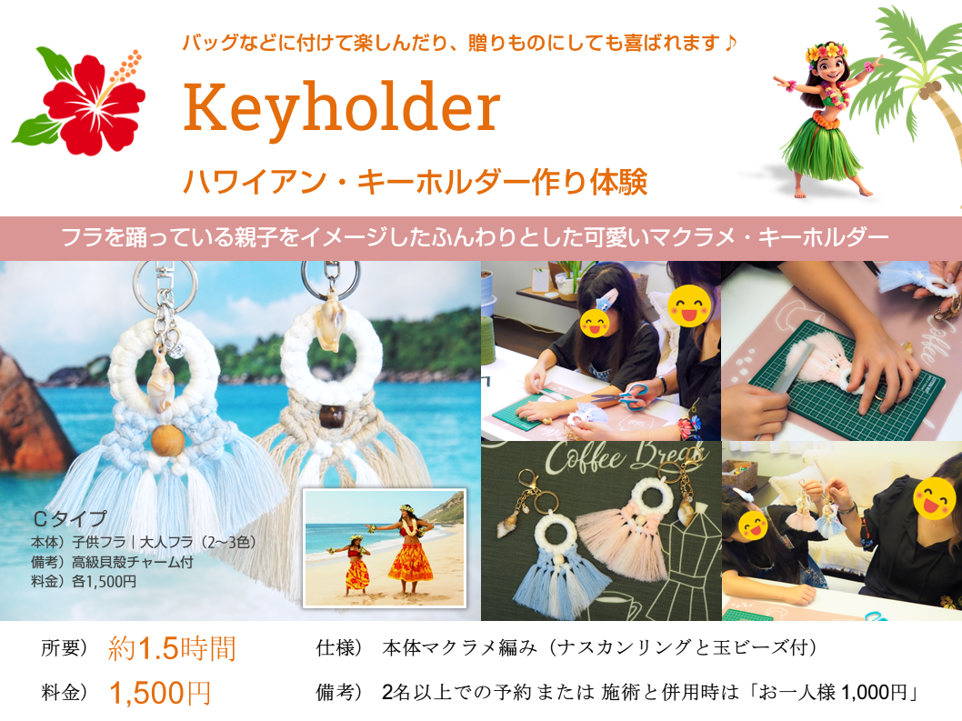 フラをイメージしたハワイアンなマクラメ・キーホルダー (2タイプ)