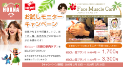 お顔の筋肉ケア「お試しモニターキャンペーン」は「3/31迄」です♪